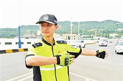 市交警一大队机动中队党员民警疏导交通。刘婕摄